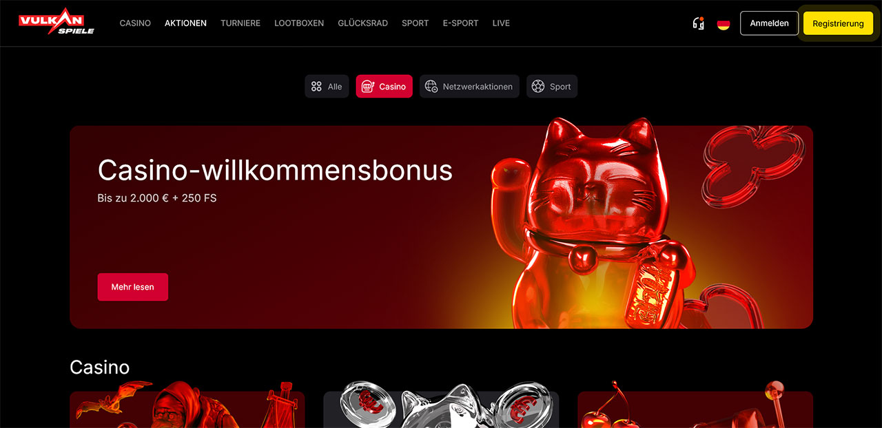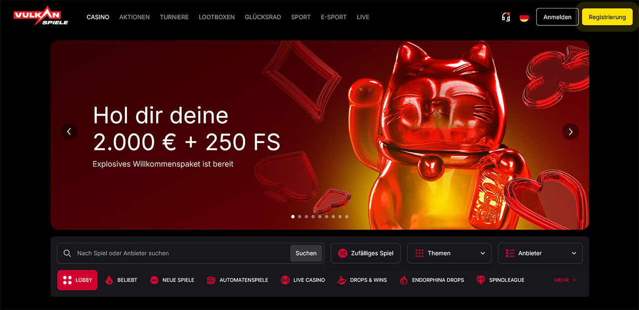 Besuchen Sie die Website von VulkanSpiele Casino, indem Sie auf den roten Button auf dieser Seite klicken, und registrieren Sie sich.