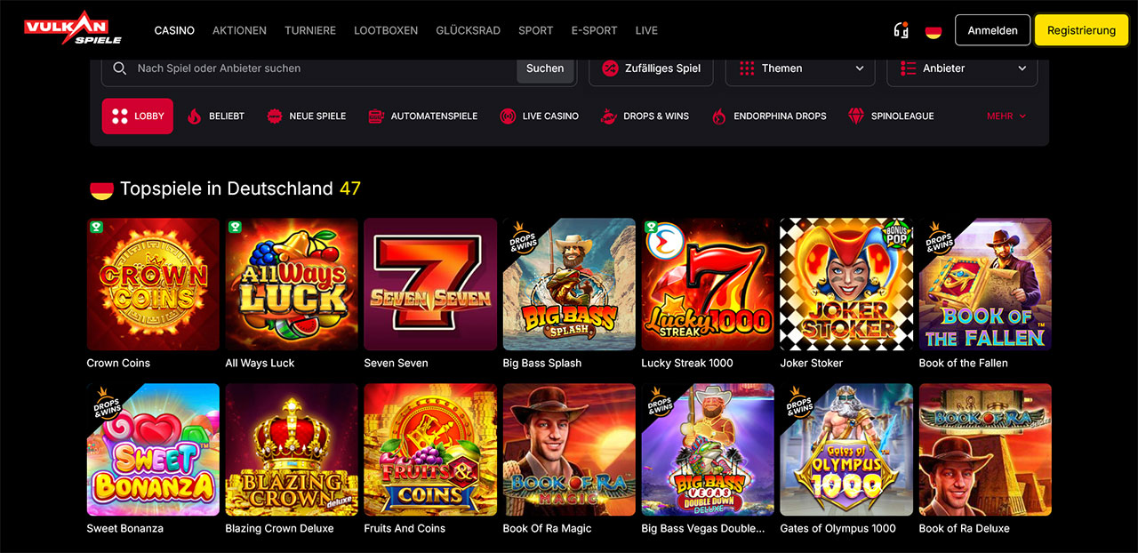 After making a deposit at VulkanSpiele Casino, you can immediately try online slots, live casino or other real money casino games.